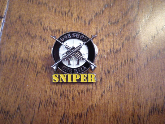 SNIPER ONE SHOT ONE KILL HAT PIN LAPEL PIN DOUBLE POST CLUTCH BACK