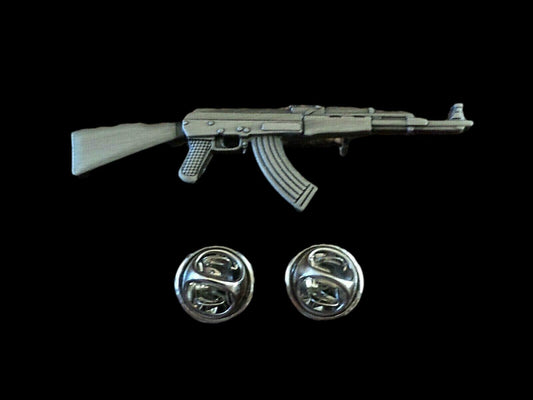 MILITARY AK-47 RIFLE HAT LAPEL PIN DOUBLE CLUTCH BACK GOOD QUALITY