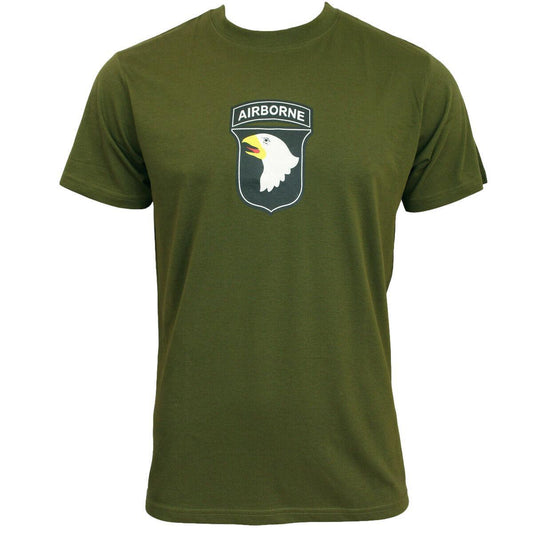 101st Airborne Army T-Shirt OD Green 100% Cotton Insignia On Front & Back