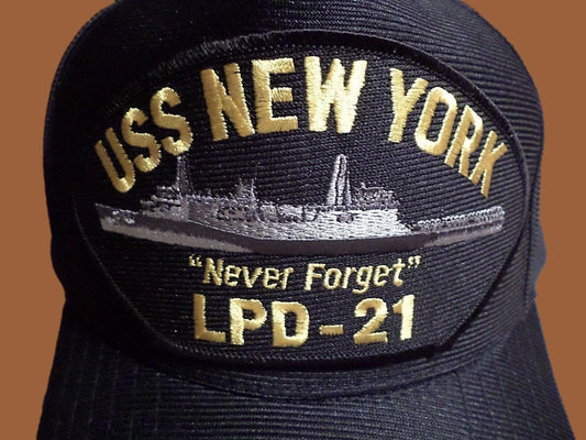 USS NEW YORK LPD-21 NEVER FORGET NAVY SHIP HAT U.S MILITARY OFFICIAL BALL CAP