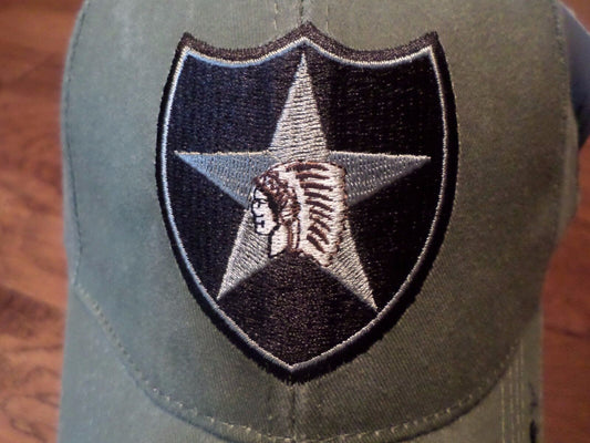 ARMY 2d INFANTRY DIVISION HAT EMBROIDERED U.S MILITARY CAP OD GREEN STONEWASHED