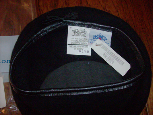 U.S MILITARY ISSUE BLACK WOOL BERET MADE IN THE U.S.A BY BANCROFT SIZE 7 1/8