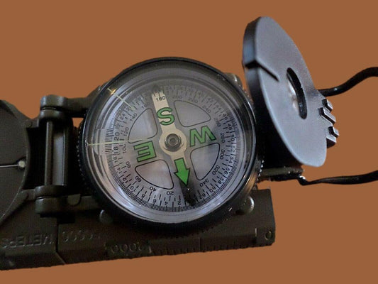 U.S MILITARY STYLE METAL COMPASS LIQUID FILLED SLIDE RULER WITH NYLON OD POUCH