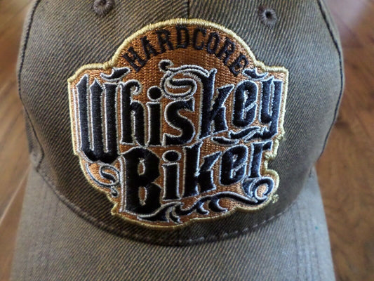 HARDCORE WHISKEY BIKER PREMIUM OILSKIN 6 PANEL CAP EMBROIDERED BIKER HAT