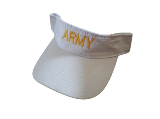 U.S ARMY SUN VISOR CAP WHITE HAT WITH EMBROIDERED YELLOW ARMY