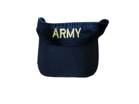 U.S ARMY SUN VISOR CAP BLACK HAT WITH EMBROIDERED YELLOW ARMY