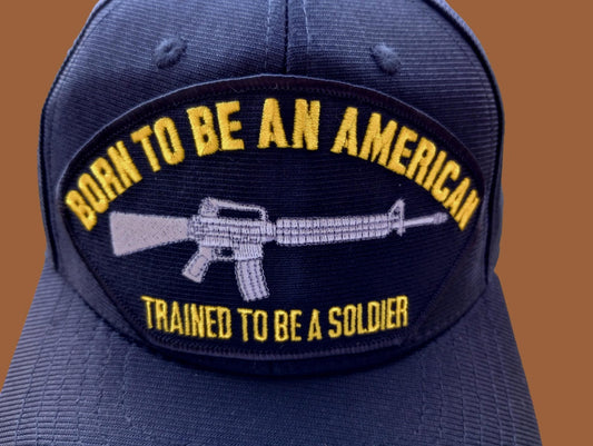BORN TO BE AMERICAN TRAINED TO BE A SOLDIER HAT MILITARY OFFICIAL CAP USA MADE