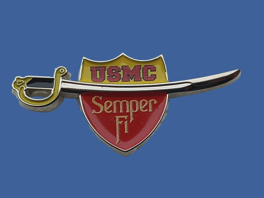 U.S MARINE CORPS HAT PIN LAPEL SWORD SABRE SEMPER FI SHIELD USMC VETERAN