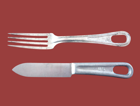 WWII U.S MILITARY MESS KIT WITH MEAT CAN POUCH 1945 KHAKI M-1928 GENUINE SET