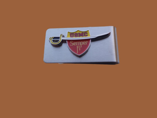 U.S MILITARY MARINE CORPS WITH SWORD METAL MONEY CLIP U.S.A MADE SEMPER FI