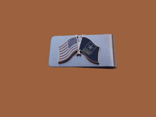 U.S MILITARY ARMY FLAG WITH U.S.A FLAG METAL MONEY CLIP U.S.A MADE NEW IN BAGS