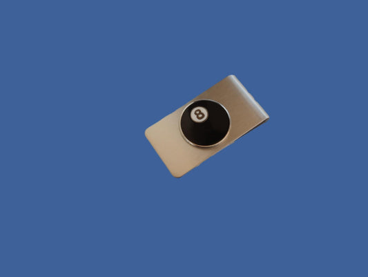8 BALL STAINLESS STEEL MONEY CLIP U.S.A MADE BILLIARDS EIGHT BALL POOL