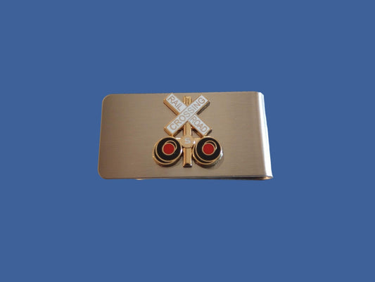 RAILROAD CROSSING STAINLESS STEEL MONEY CLIP U.S.A MADE RR SIGNAL LIGHTS