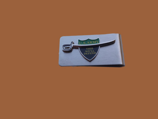 U.S MILITARY ARMY WITH SWORD METAL MONEY CLIP U.S.A MADE THIS WE'LL DEFEND