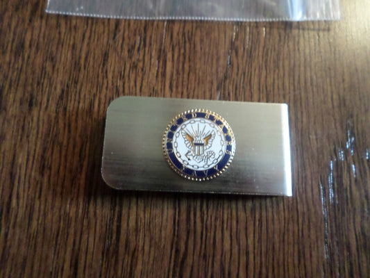 U.S MILITARY NAVY INSIGNIA LOGO METAL MONEY CLIP U.S.A MADE NEW IN BAGS