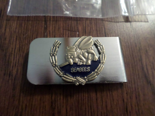 U.S MILITARY NAVY SEABEES WITH WREATH METAL MONEY CLIP U.S.A MADE NEW IN BAGS