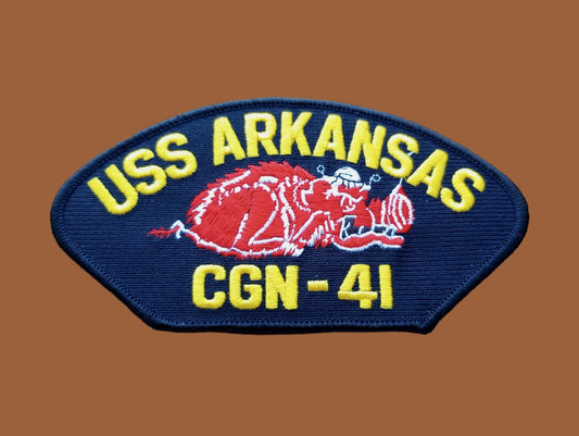 U.S NAVY SHIP HAT PATCH USS ARKANSAS CGN-41 USA MADE HEAT TRANSFER RAZORBACK