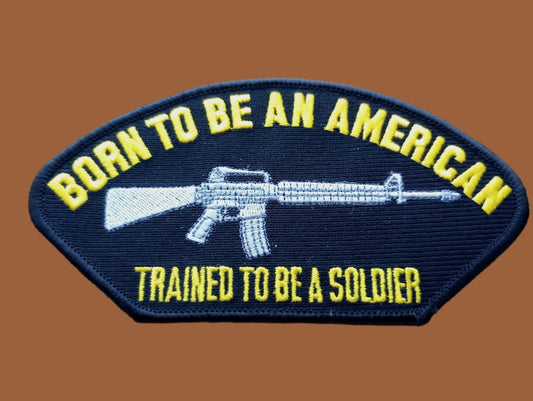 U.S MILITARY HAT PATCH BORN TO BE AN AMERICAN RIFLE HEAT TRANSFER NEW IN BAGS