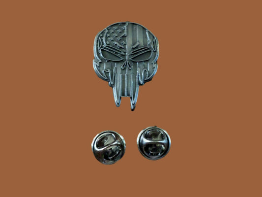 PATRIOTIC SKULL DEMON HAT PIN LAPEL DOUBLE POST PIN USA FLAG SKULL SNIPER