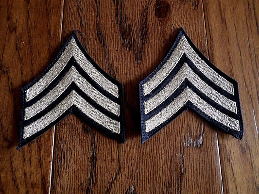 ORIGINAL U.S ARMY WWII SERGEANT STRIPES SILVER ON BLACK TWILL PATCHES