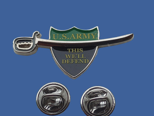 U.S ARMY HAT PIN LAPEL SWORD SABRE SHIELD ARMY VETERAN THIS WE'LL DEFEND