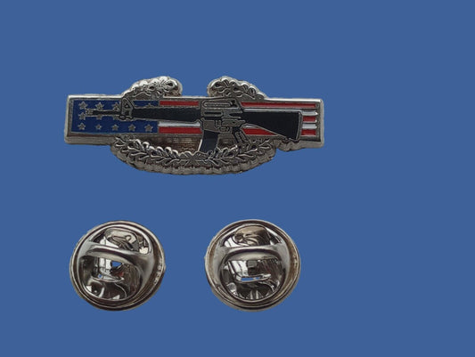 U.S MILITARY M-16 RIFLE HAT PIN LAPEL PIN U.S.A FLAG CIB 1ST AWARD BADGE WREATH