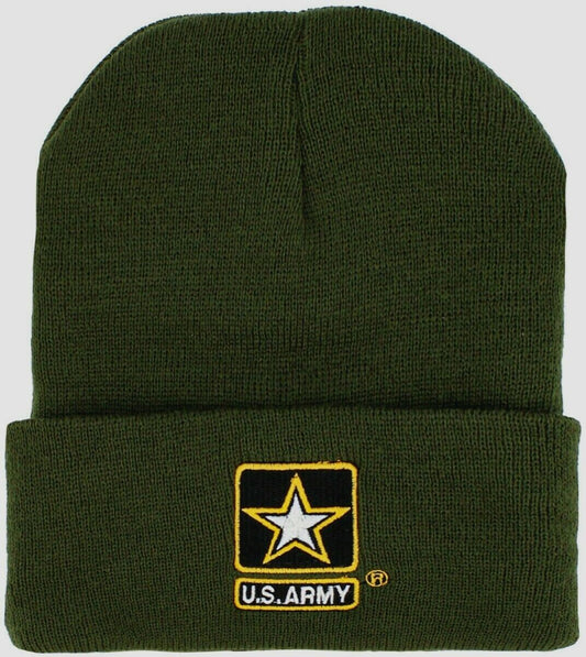 ARMY OD GREEN BEANIE WATCH CAP COLD WEATHER KNIT HAT USA MADE ARMY STAR LOGO