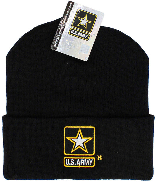 ARMY BLACK BEANIE WATCH CAP COLD WEATHER KNIT HAT USA MADE ARMY STAR LOGO