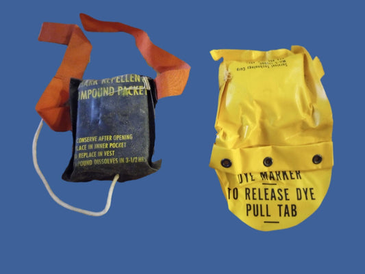 U.S MILITARY VIETNAM ERA MARINE CORPS SURVIVAL KIT FLASHLIGHT WHISTLE SHARK KIT