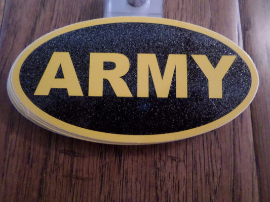 U.S MILITARY ARMY YELLOW ON BLACK GLITTER OVAL WINDOW DECAL STICKER 4.25 X 2.25