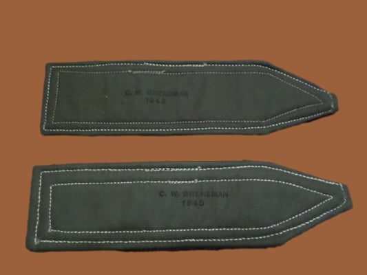 1 PAIR ORIGINAL U.S ARMY WWII SERGEANT STRIPES GREEN ON BLACK TWILL PATCHES