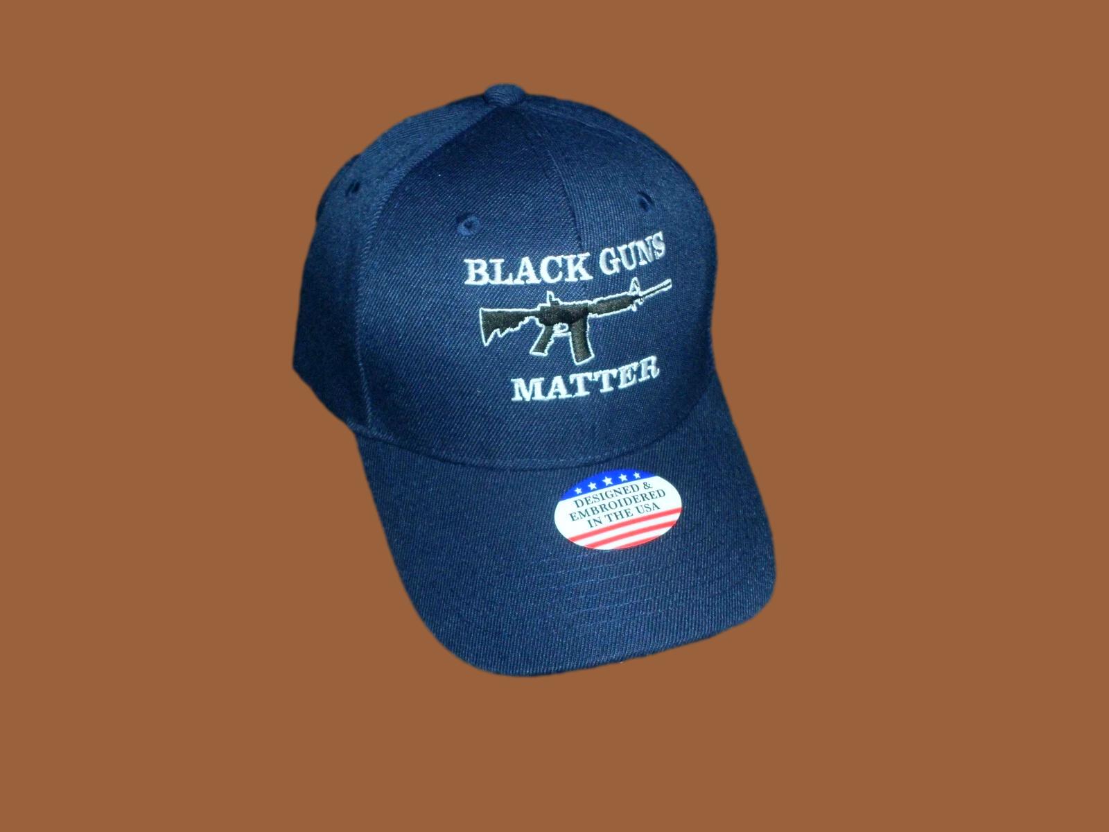 BLACK GUNS MATTER 6 PANEL CAP EMBROIDERED HAT 2nd AMENDMENT NAVY BLUE