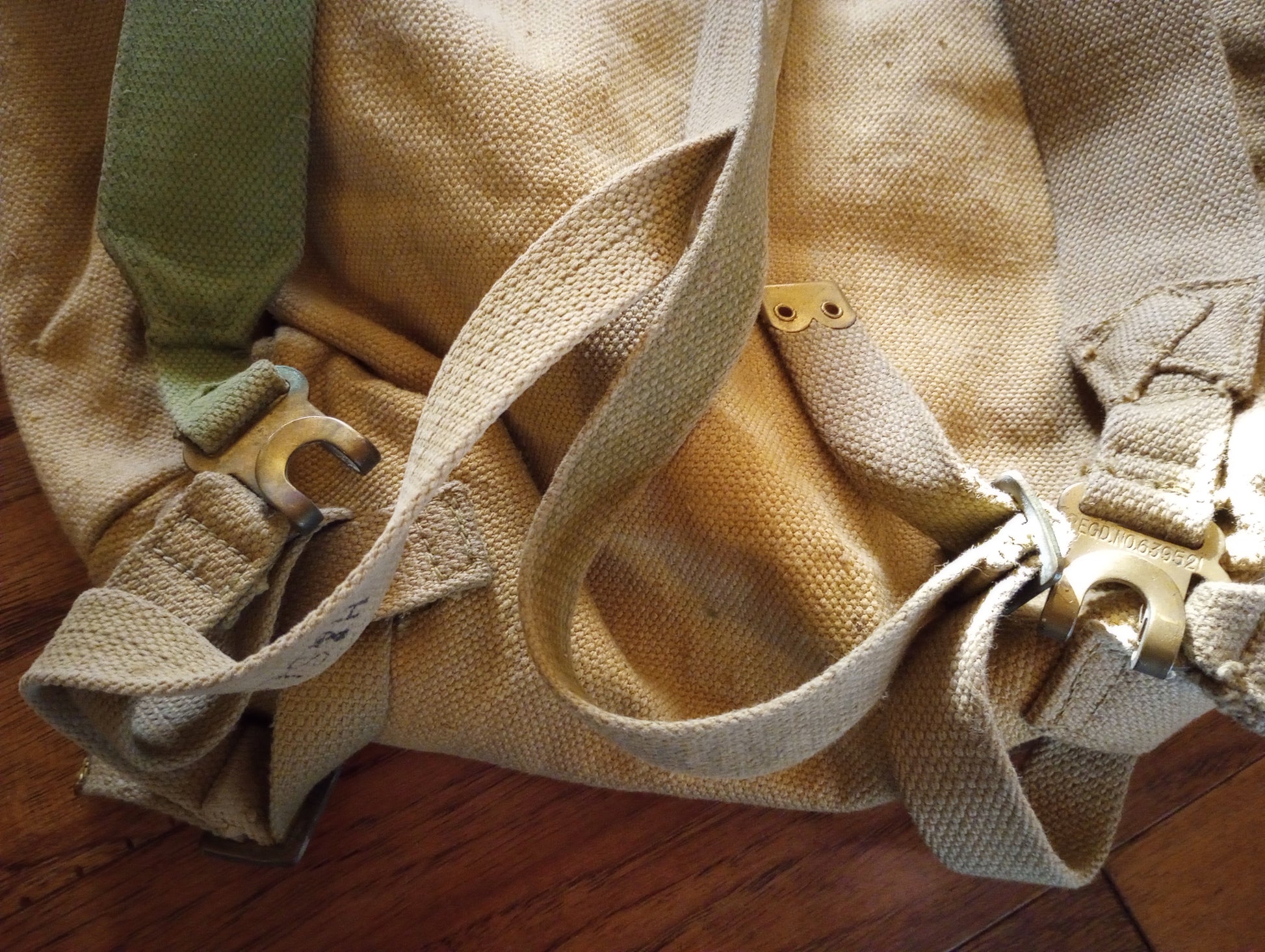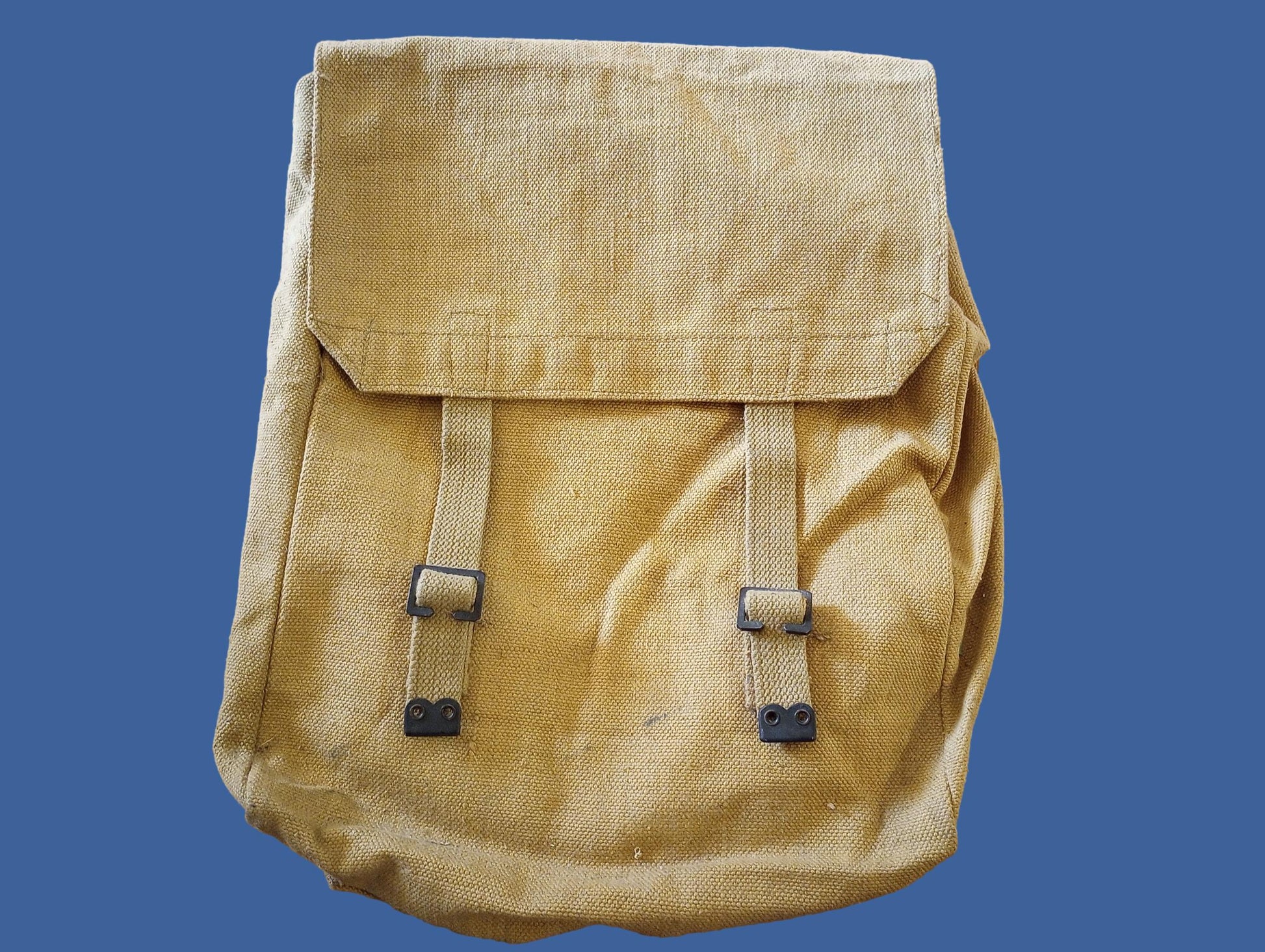 Introducing a timeless piece of history, the Genuine Post WWII British Military P-37 Backpack. This storied piece, originating from the heart of Great Britain, exemplifies the unmatched quality and durability of military-grade gear. This large backpack showcases the classic khaki color, complemented by light khaki straps, a testament to its original design and functionality.
