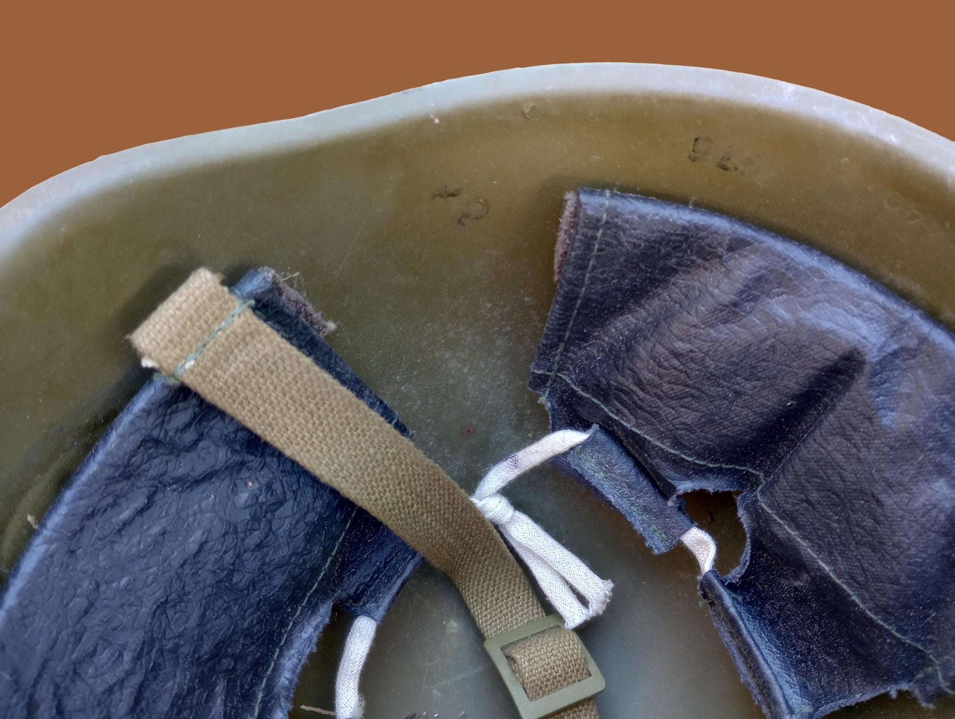 The helmet, meticulously preserved, is accompanied by its original liner and chin strap, both in very good condition, pointing to the careful preservation of military history. Notably marked with 'K-28', P-1 Size, and the manufacturing details, it confirms its authenticity and provenance. Unlike other military memorabilia, this SSH-40 remains unmodified, retaining the integrity of its original design, including the practical swivel bales and the efficient three-finger padded liner. Whether for historical education, collection, or display, this helmet offers a tangible connection to the past, embodying the spirit and history of the Soviet military. Its condition speaks volumes of the history it has witnessed, making it an invaluable piece for enthusiasts and collectors alike.