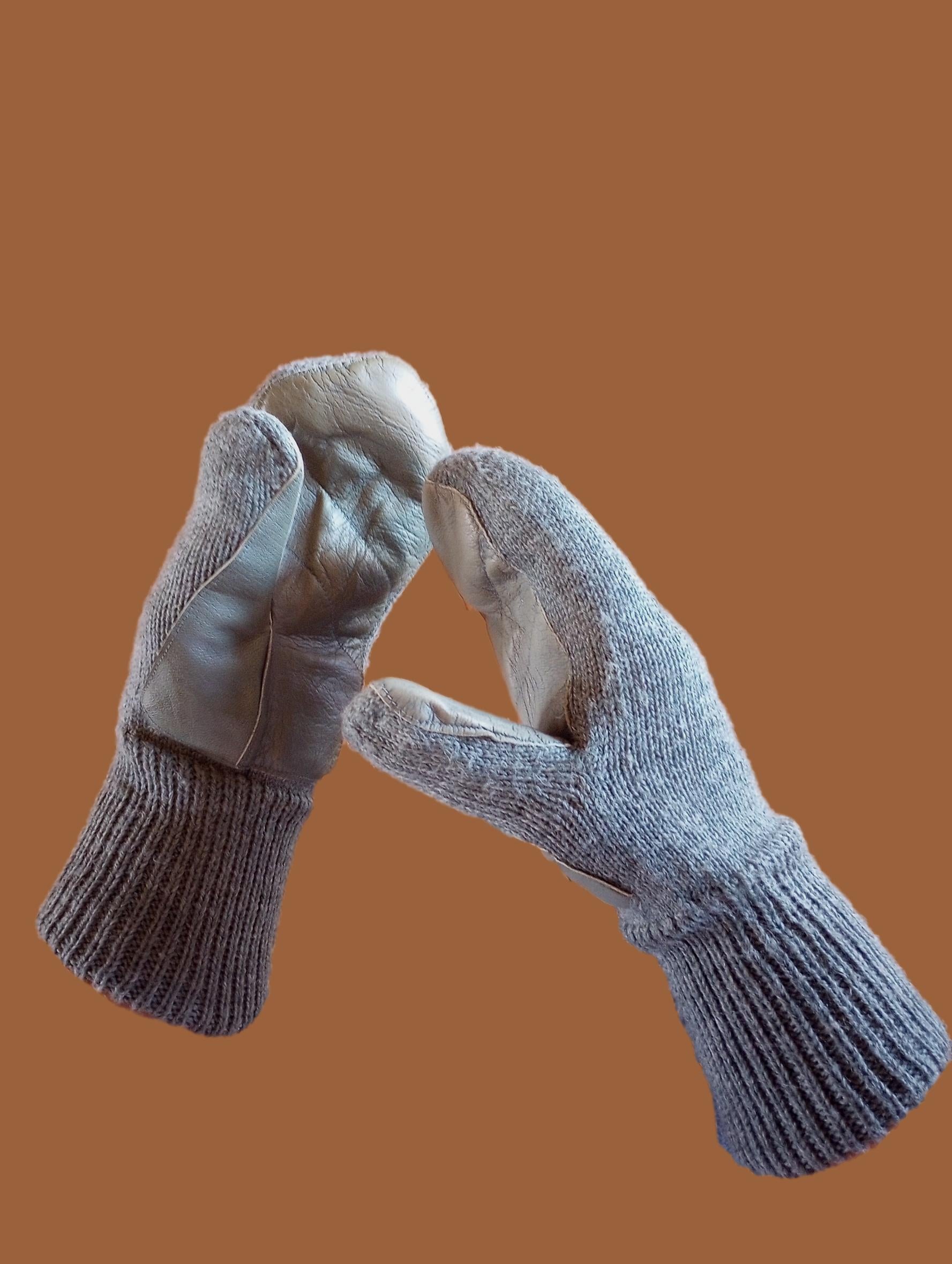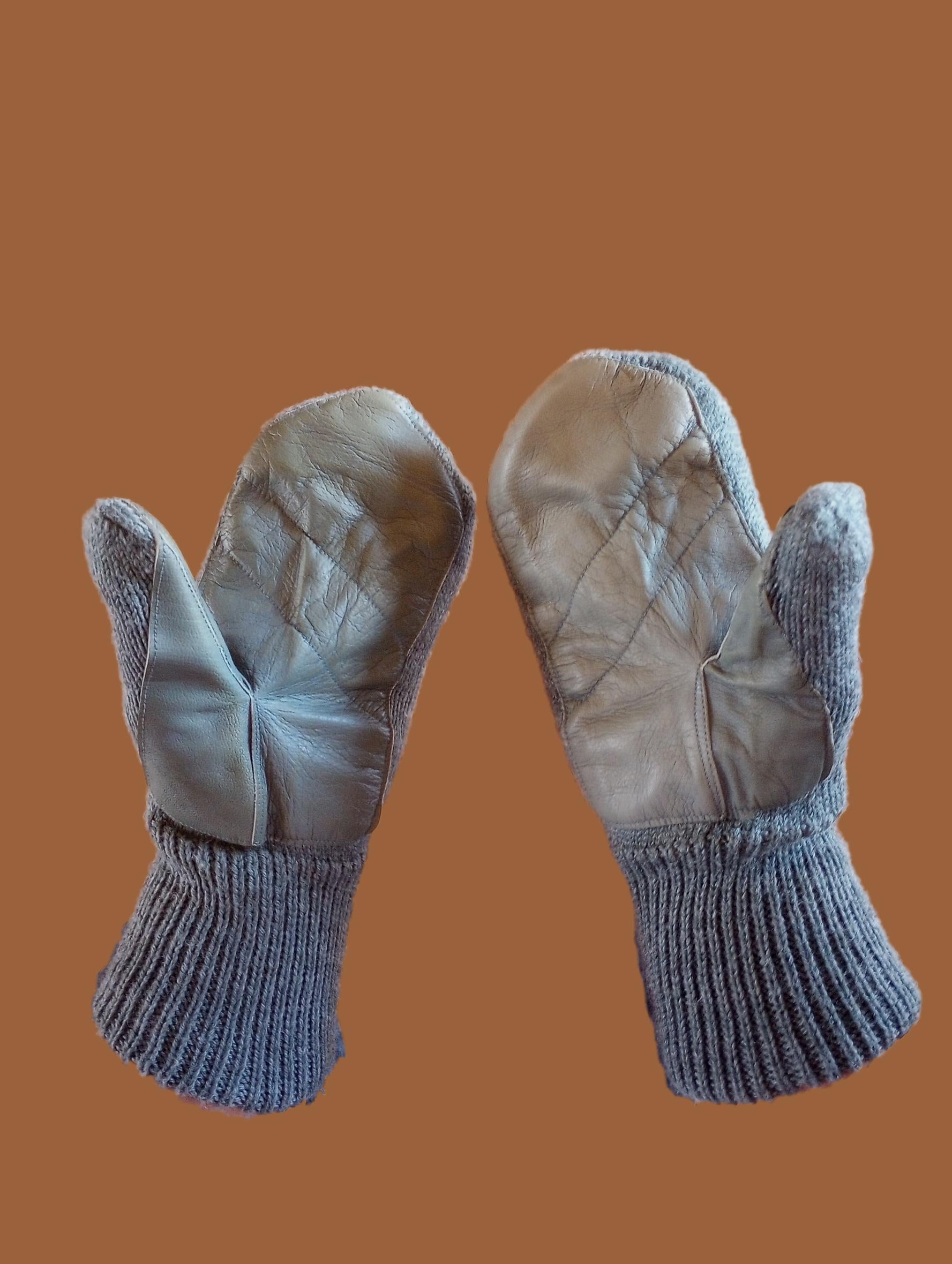 SWISS MILITARY WOOL MITTENS ARMY COLD WEATHER LEATHER PALMS SURPLUS