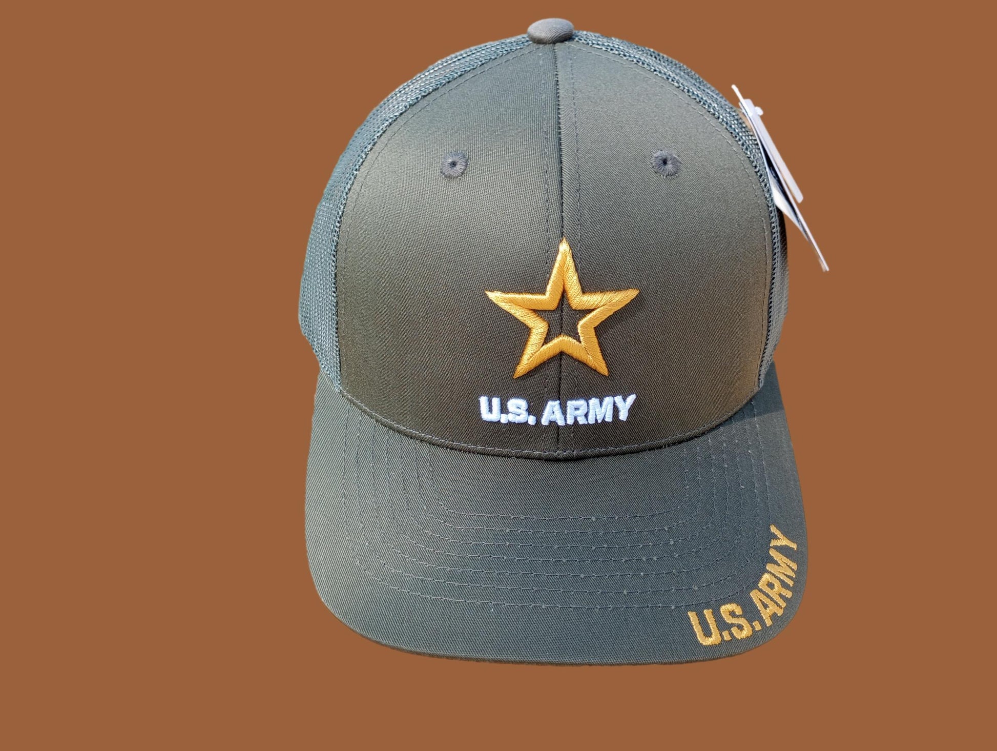 U.S Army Hat Cap Cotton Mesh Back OD Green Baseball Cap Army Star Logo