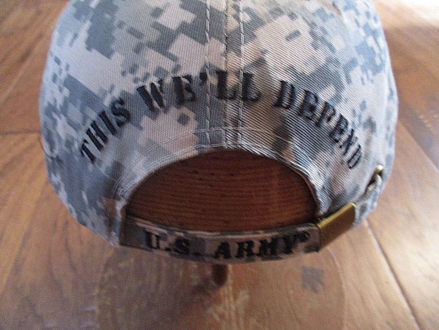 This camouflage cap bears the iconic Army Star Logo embroidered on the front, with "United States Army" detailed on the bill, accompanied by the motivational motto "This We'll Defend" proudly displayed on the back. Whether for casual wear, outdoor adventures, or to show support during Army events, this cap is a versatile accessory that speaks volumes of one’s loyalty to the U.S Army. In addition, the all-terrain camo pattern offers both functionality and a fashionable edge, making it suitable for any occasion.