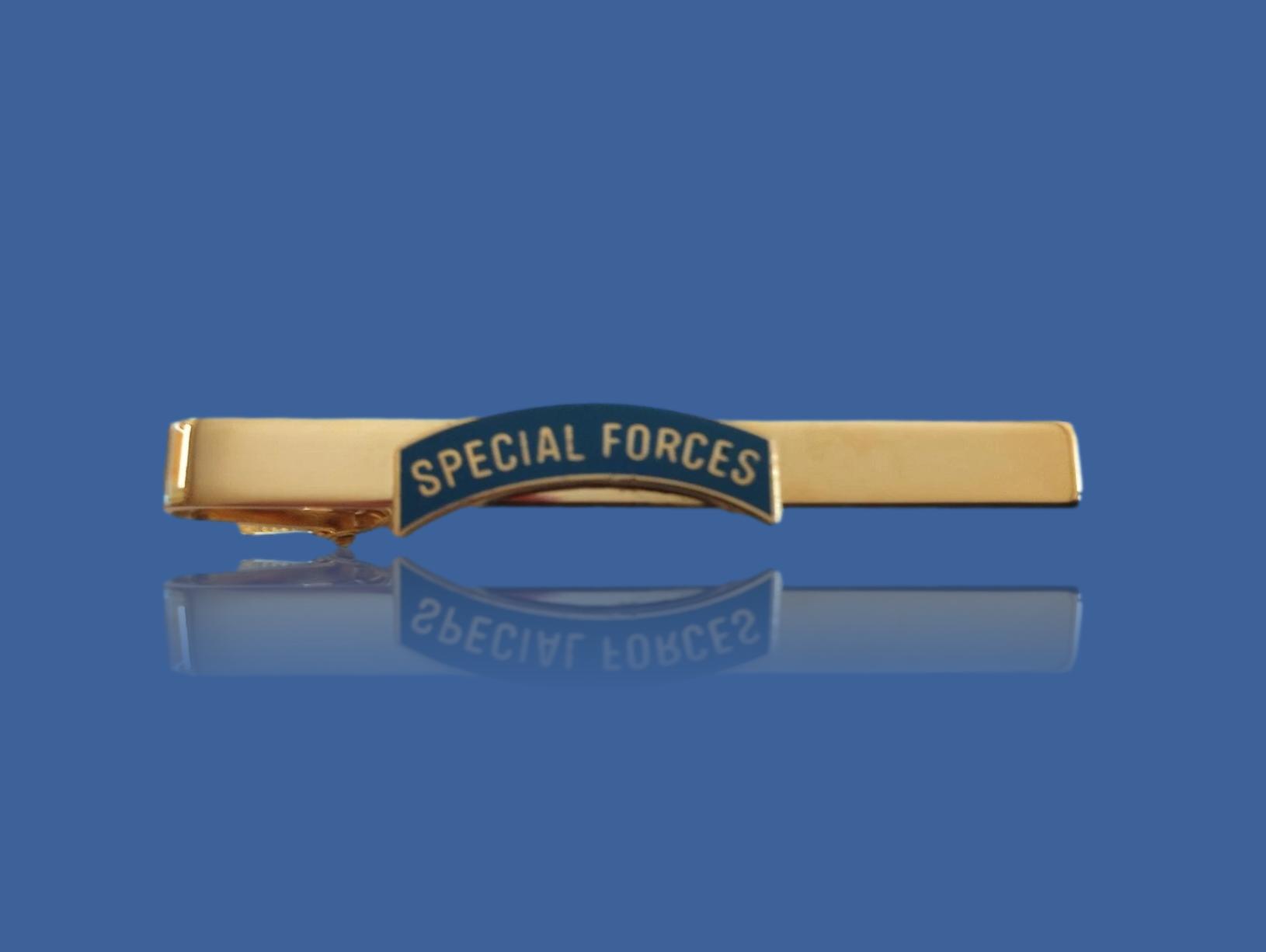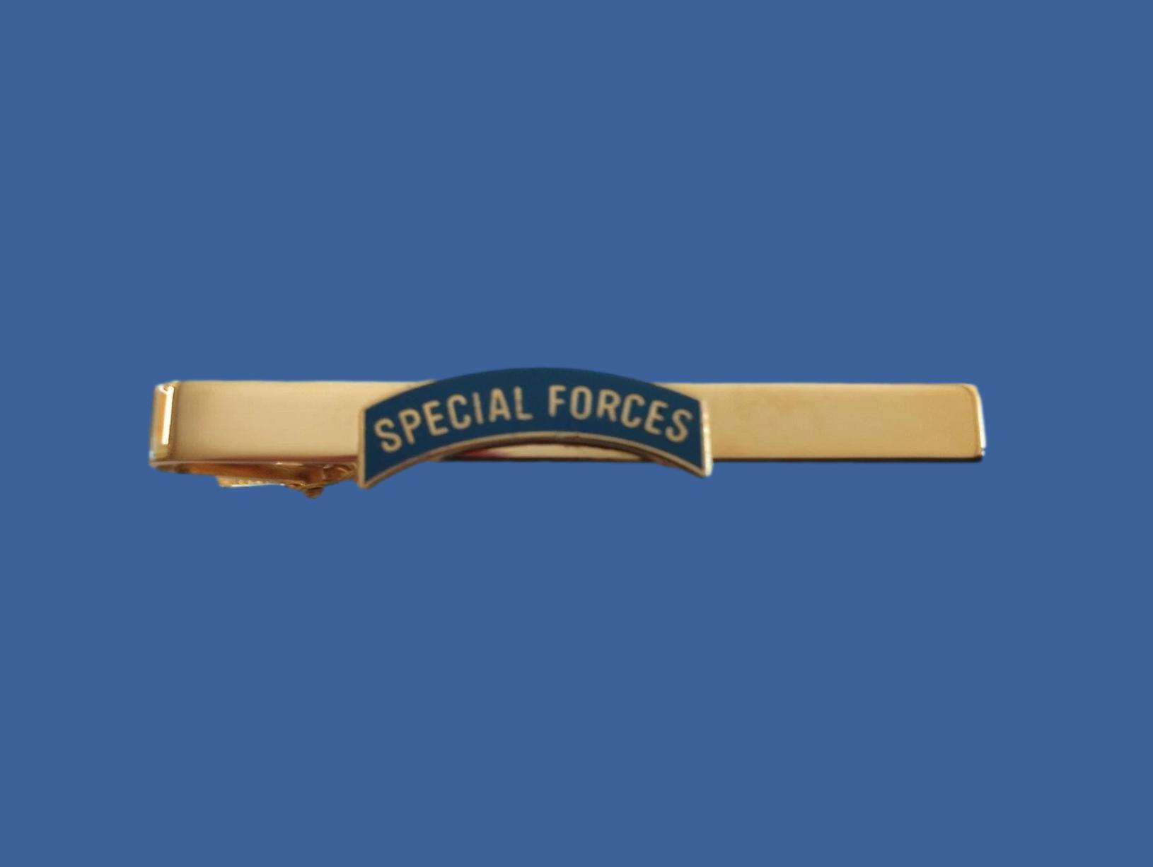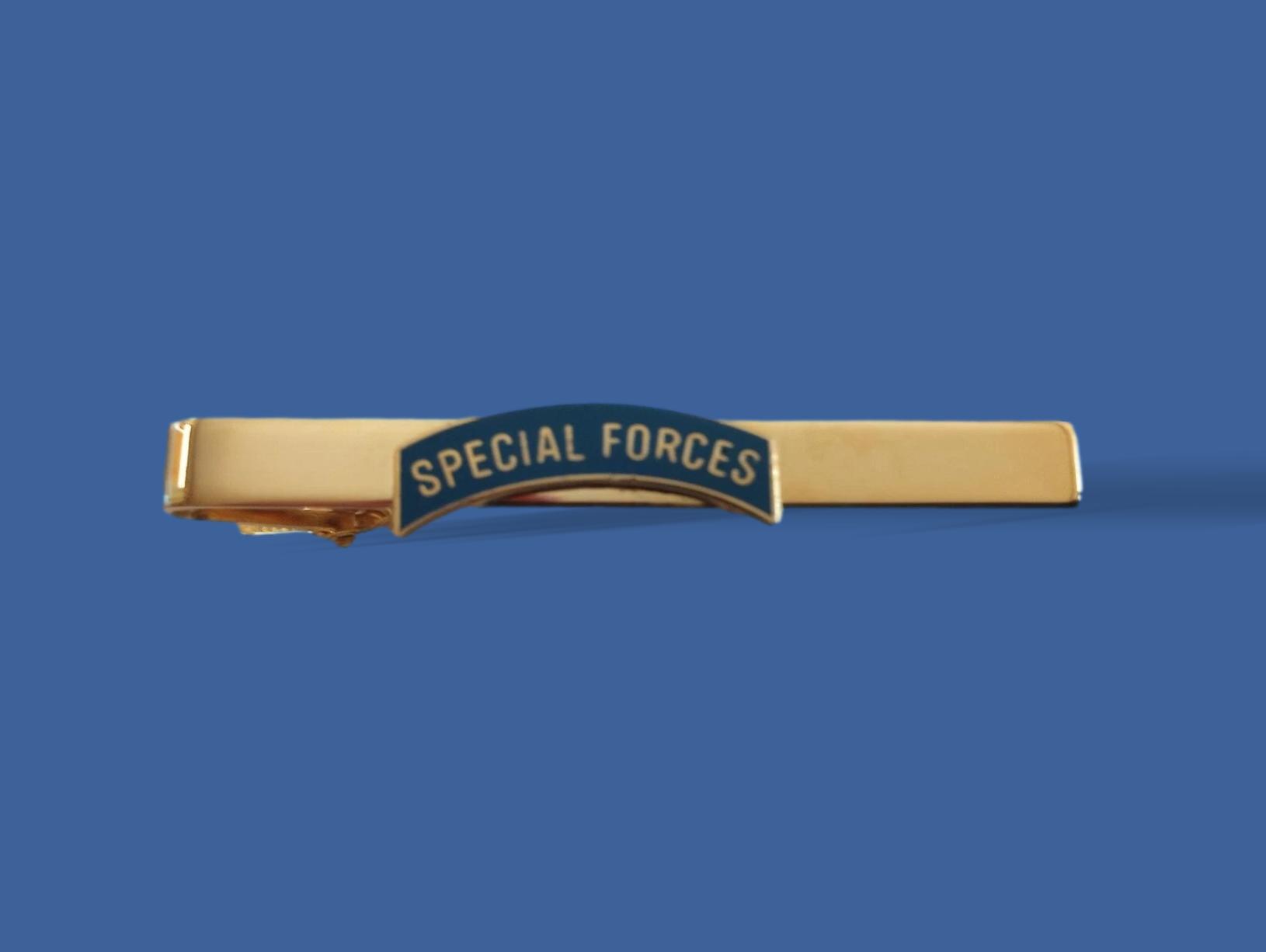 Experience a blend of sophistication and valor with our U.S. Army Special Forces Tie Bar, a symbol of commitment and bravery. Meticulously crafted in the United States, this tie bar represents more than just an accessory; it embodies the spirit and dedication of the Special Forces. Featuring the iconic Special Forces tab fixed on a stunning gold-colored metal bar, this piece is designed to elevate the appearance of any gentleman's tie with elegance and pride. Whether you're dressing up for a formal occasion or honoring a military event, this tie bar adds a distinctive touch to your ensemble.