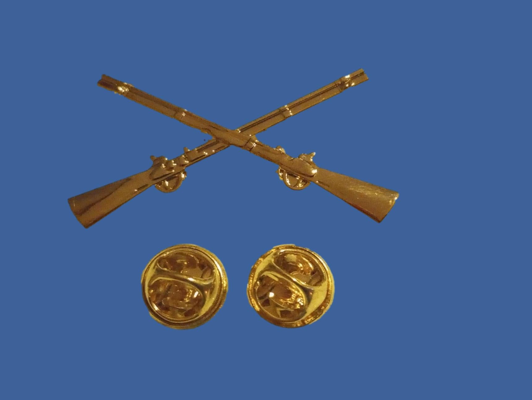 U.S MILITARY INFANTRY PIN CROSSED RIFLES METAL HAT LAPEL BADGES 1 3/4 ARMY