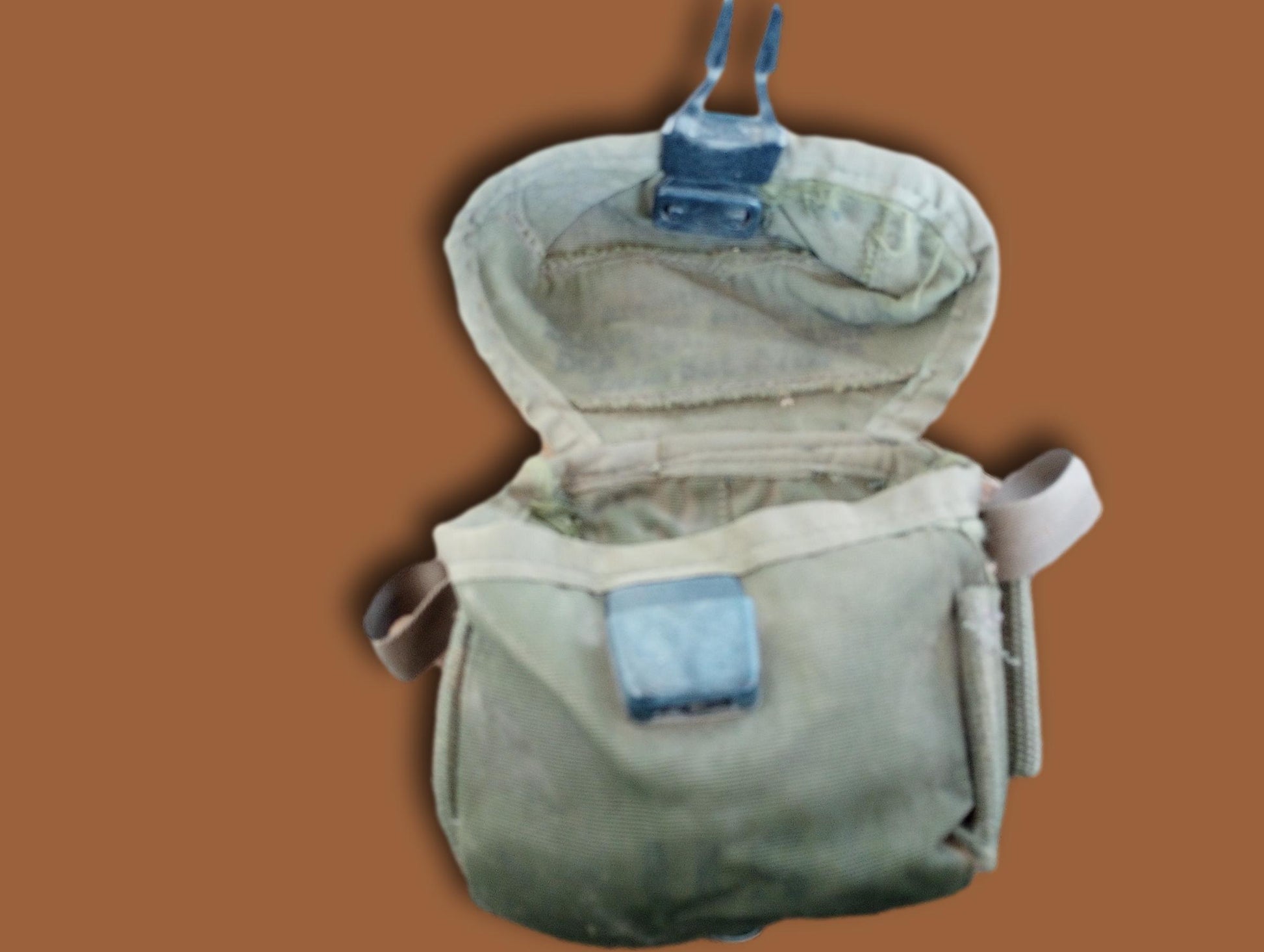 U.S MILITARY M1967 VIETNAM ISSUE 20rd MAGAZINE POUCH DATED 1968 (DSA # 100-68-C-2778) POUCH IS MADE OF NYLON AND IS OLIVE GREEN IN COLOR. MAGAZINE CAPACITY IS THREE 20rd .223 CALIBER OR 5.56MM MAGAZINES. BELT CARRY WITH TWO ALICE CLIPS. QUICK RELEASE BUCKLE CLOSURE. U.S STAMPED ON FRONT. NSN # 8465-935-6780. POUCH IS IN GOOD CONDITION WITH NO ISSUES.