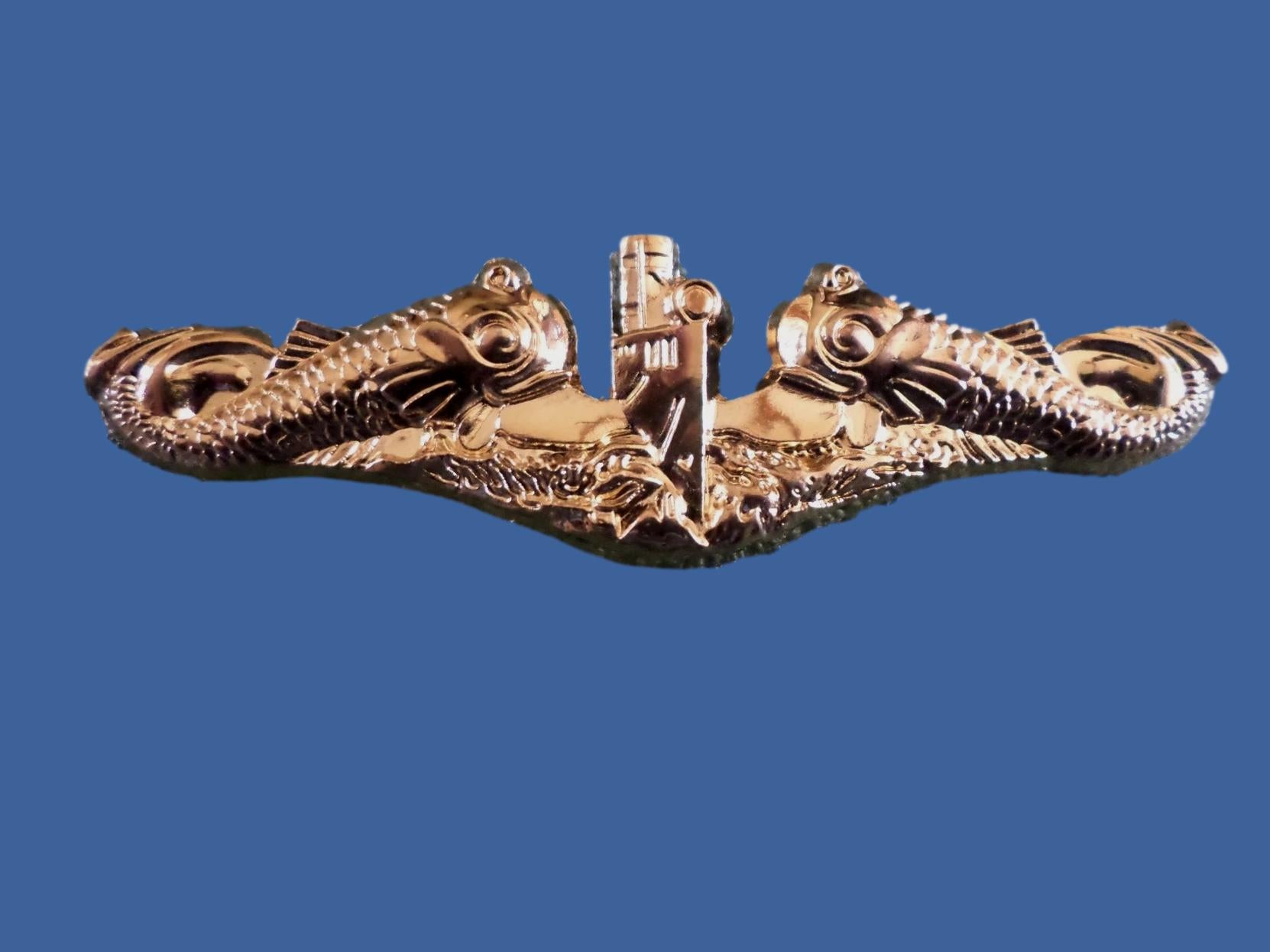 U.S MILITARY NAVY GOLD SUBMARINE PIN BADGE OFFICERS DOUBLE CLUTCH BACK METAL