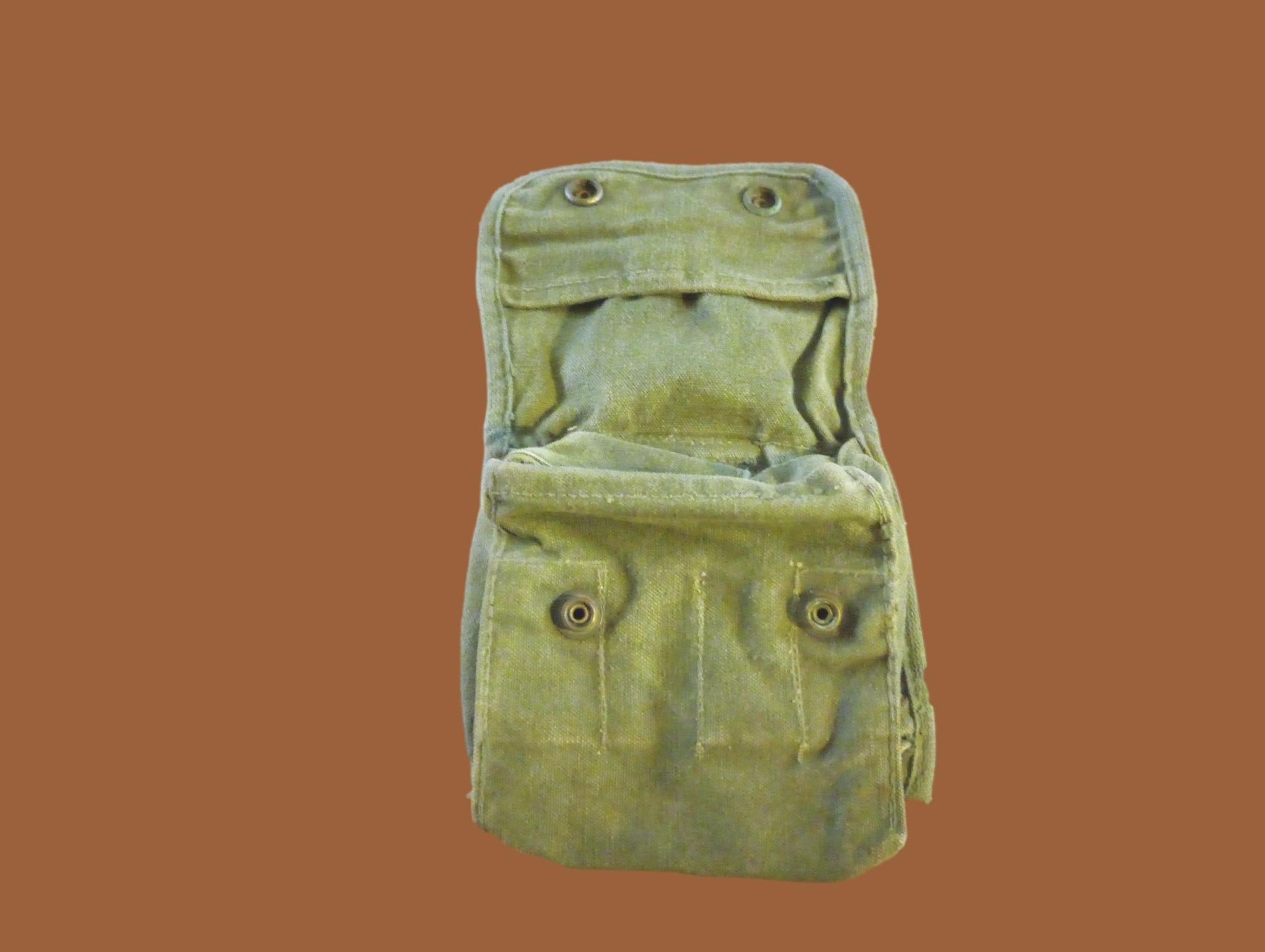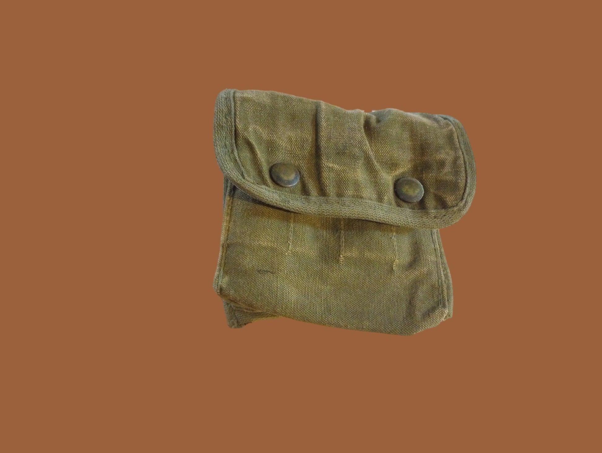 Introducing our meticulously preserved piece of history, the Vietnam War Original Jungle First Aid Kit Pouch, now available in an authentic OD Green canvas. This unique item not only carries the essence of the era bygone but also boasts of utilitarian design meant for those who appreciate the value of historical artifacts. Crafted with durable canvas, the pouch features dual snap closures ensuring your contents are secure, complemented by two protective foul weather flaps to withstand elements. The thoughtful addition of an M-1910 belt hook loop along with a wide belt loop accommodates military pistol and combat belts up to 2 3/4" inches wide.