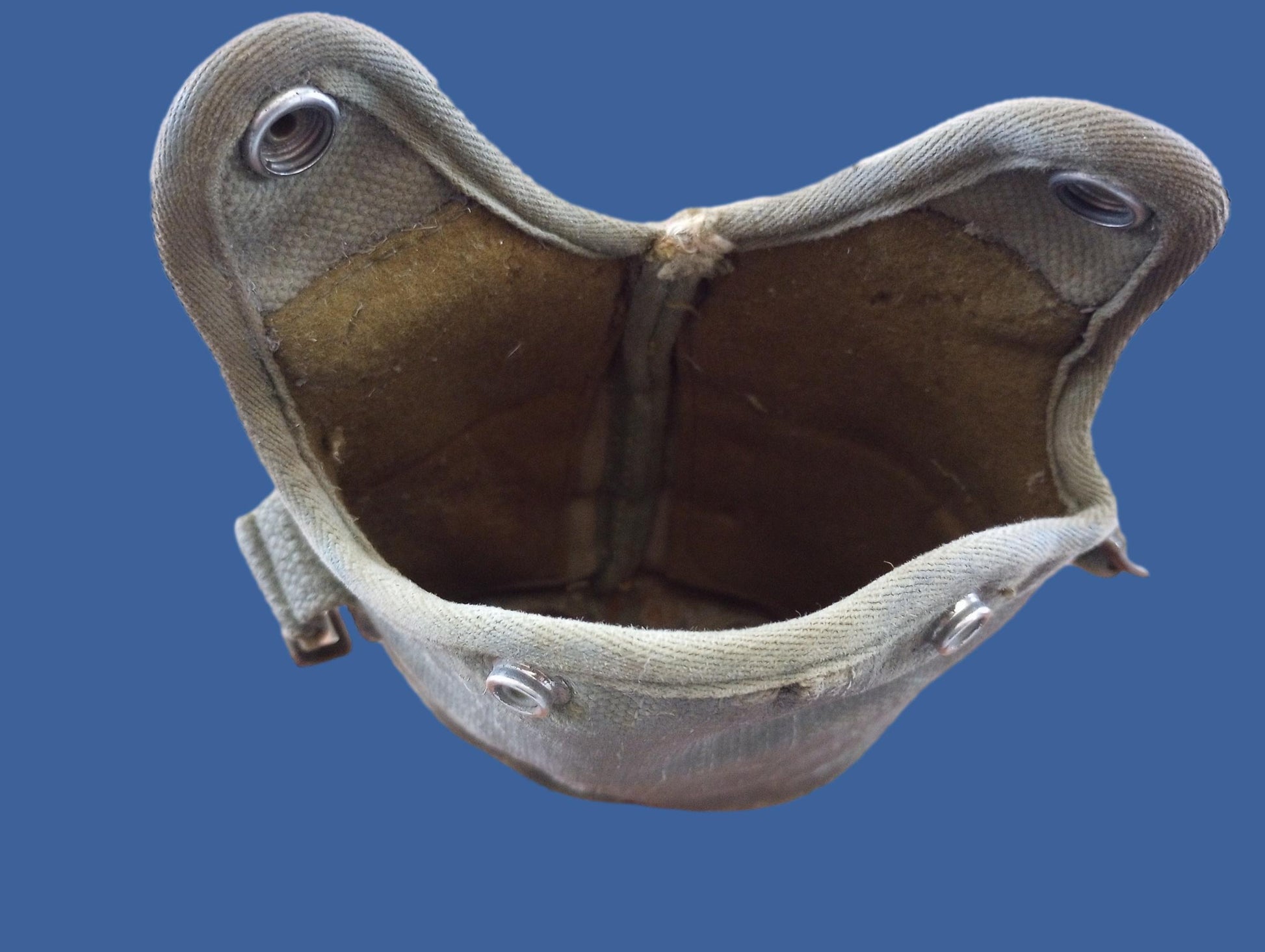 GENUINE VINTAGE MILITARY CANTEEN WITH SHOULDER STRAP. CANTEEN IS AN ORIGINAL WWI ERA M1910 (1914-1918) U.S ISSUE ALUMINUM 1 QUART WITH ORIGINAL SCREW ON CAP WITH CHAIN AND CORK. CAP IS DOME TYPE WITH FLUTED RIDGES AND PINNED LUG ATTACHMENT FOR THE CHAIN. CANTEEN COVER IS BELGIAN MILITARY USED IN THE 1950'S - 1960'S ERA. MADE OF A COTTON CANVAS MATERIAL WITH A WOOL BLEND PYLE LINING WITH TWO BRASS SNAP CLOSURES. SHOULDER STRAP IS A BRITISH MILITARY P-37 PATTERN 1940'S -1950'S MADE OF COTTON CANVAS WITH BRASS HARDWARE. COVERS AND STRAPS MFG BY THE BRITISH FOR THE BELGIAN MILITARY.