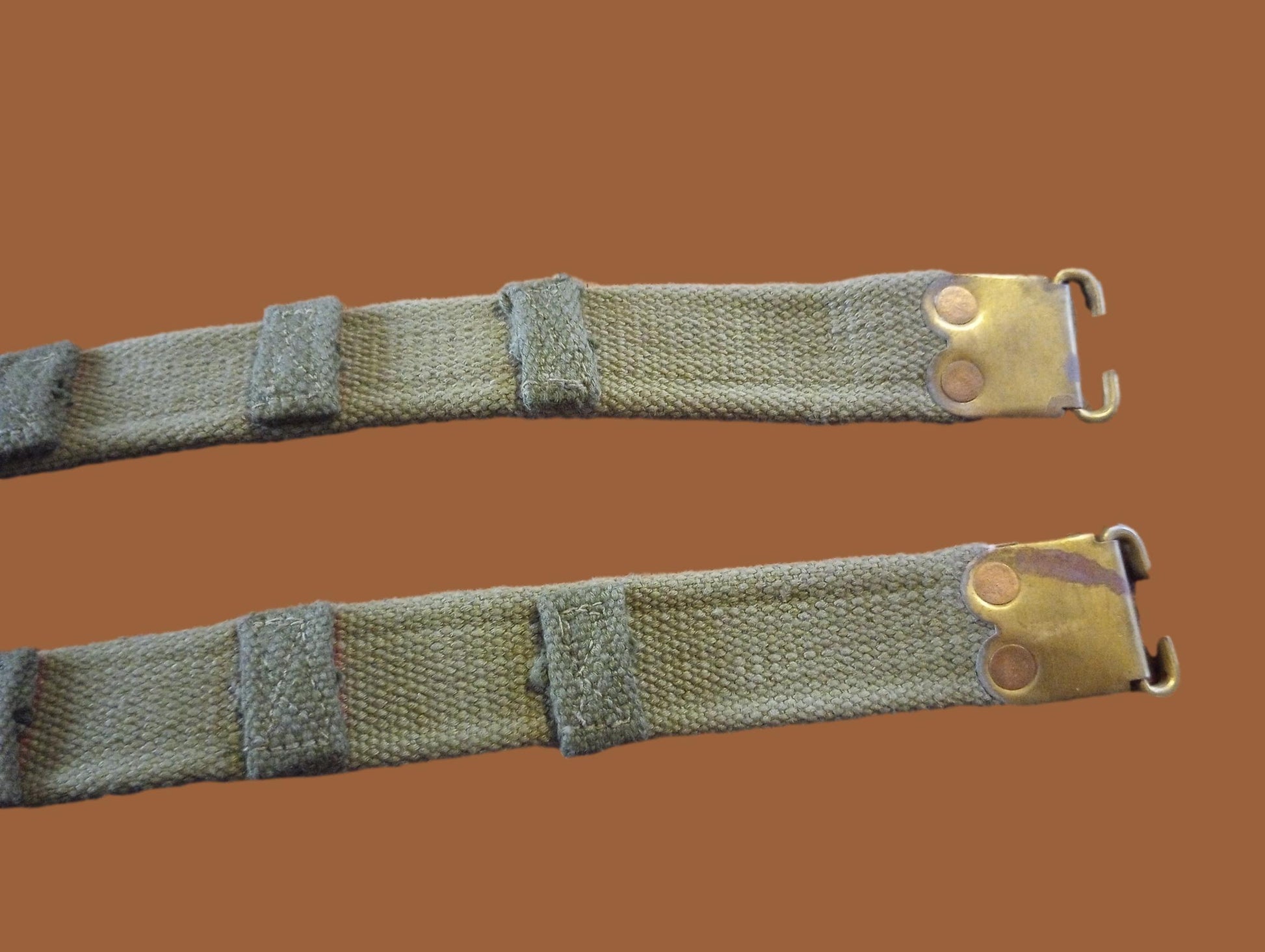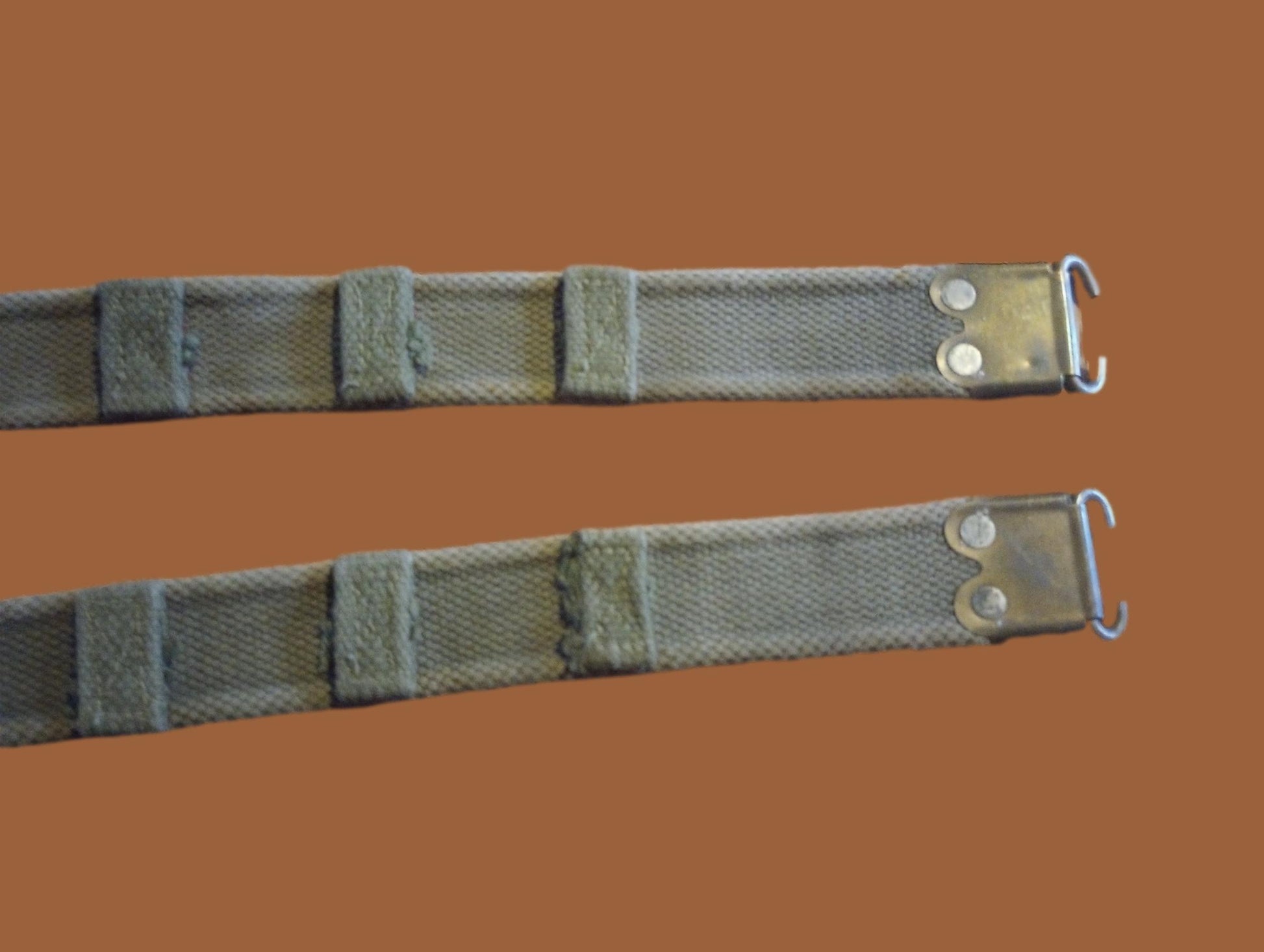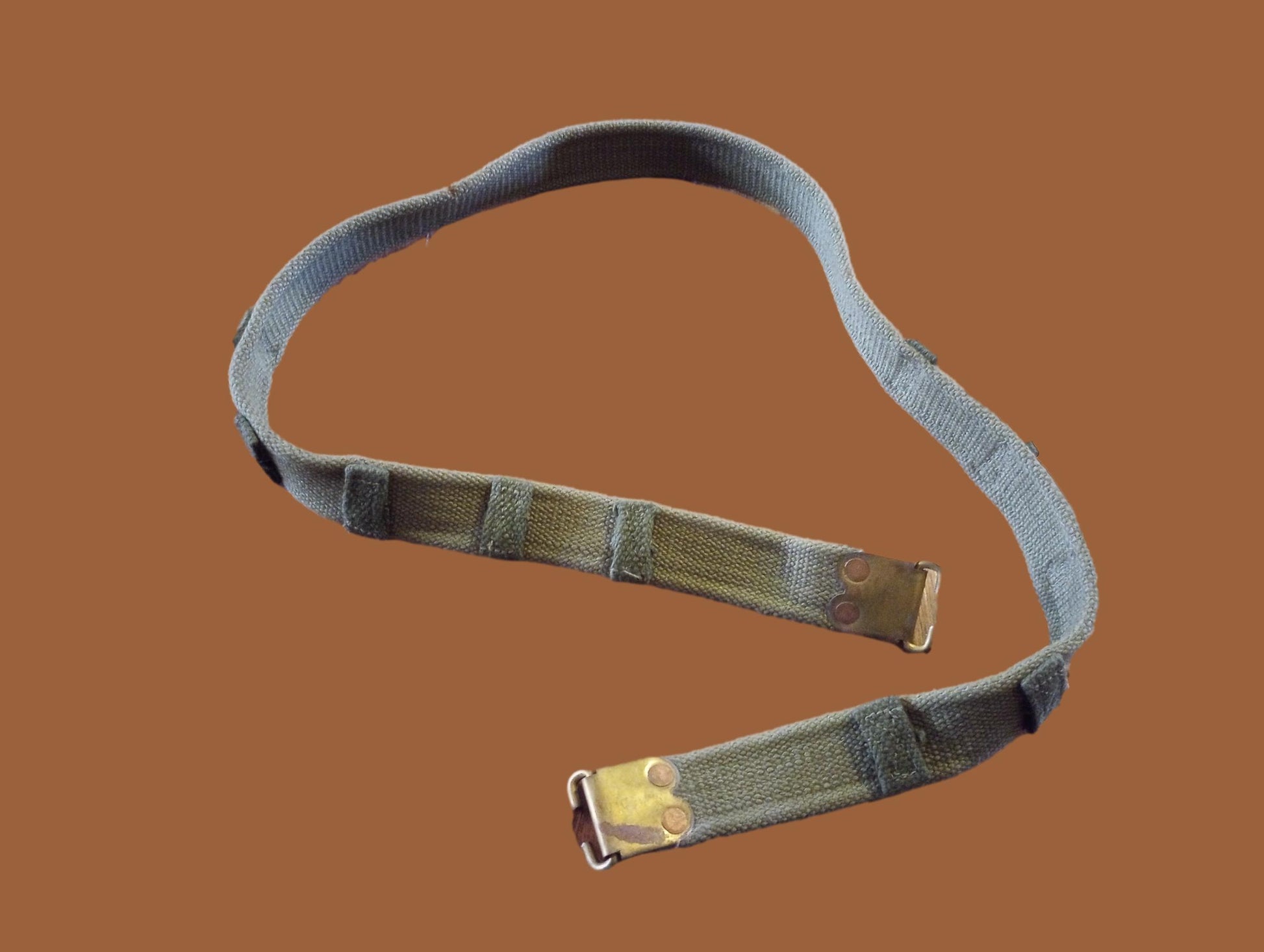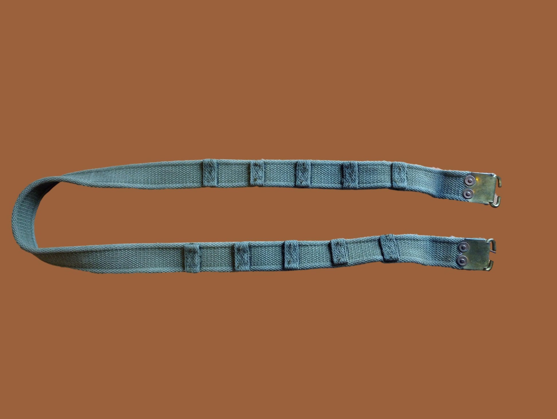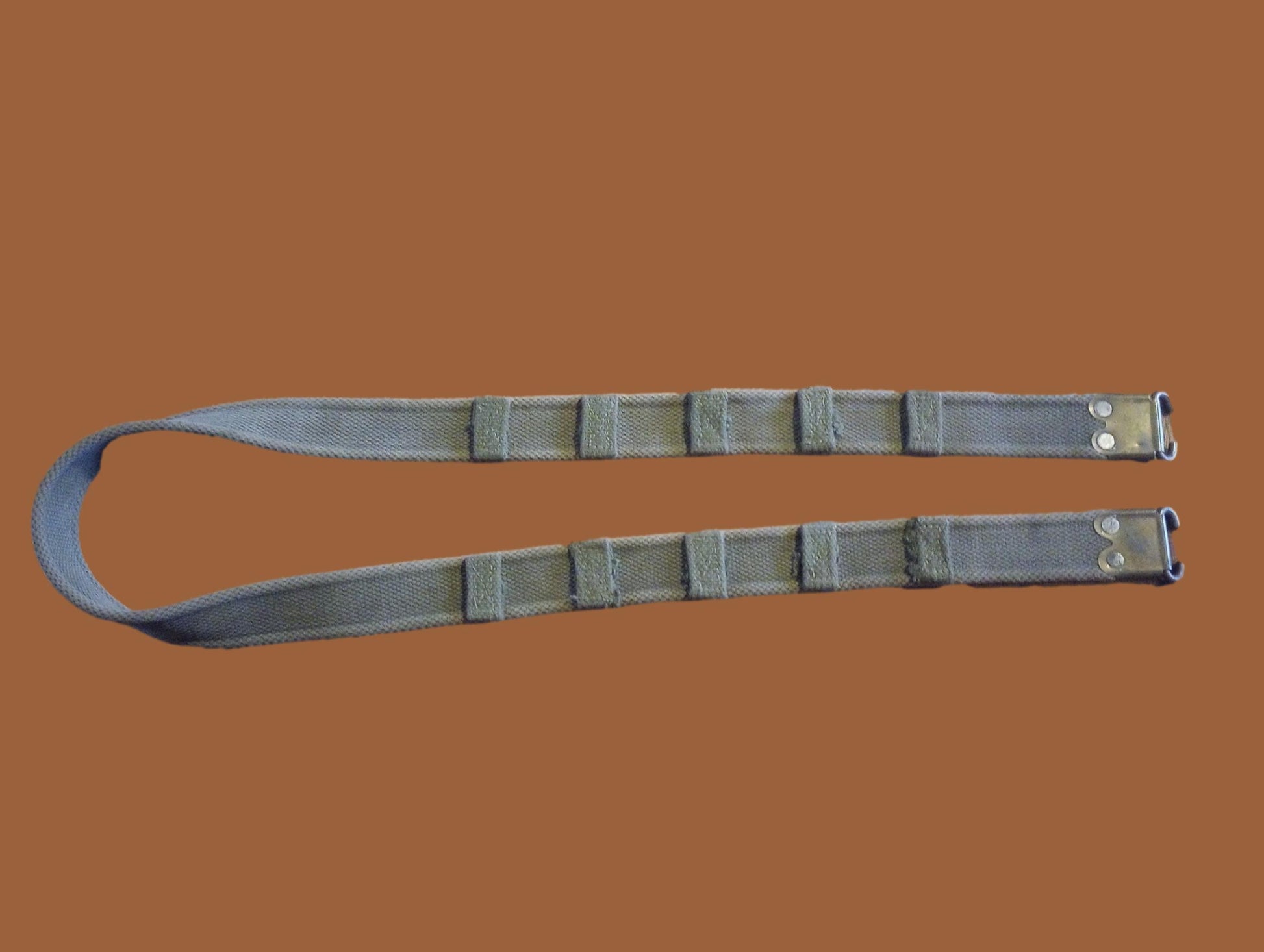 Immerse yourself in history with the genuine P-37 or Pattern 37 British military Enfield rifle sling, a crucial piece of World War II and post-war militaria. Crafted with precision in the United Kingdom, this original webbing sling features robust brass hardware and is finished in a distinctive khaki light green color. Measuring 40 - 42 inches in length and 1 1/8 inches in width, each sling is designed to bear the weight and stresses of military use, showcased by the load-bearing tabs at its ends. Compatible with the iconic Enfield rifles as well as the Belgian 49 Automatic Rifle 7.62, it stands as a testament to British military ingenuity and engineering.