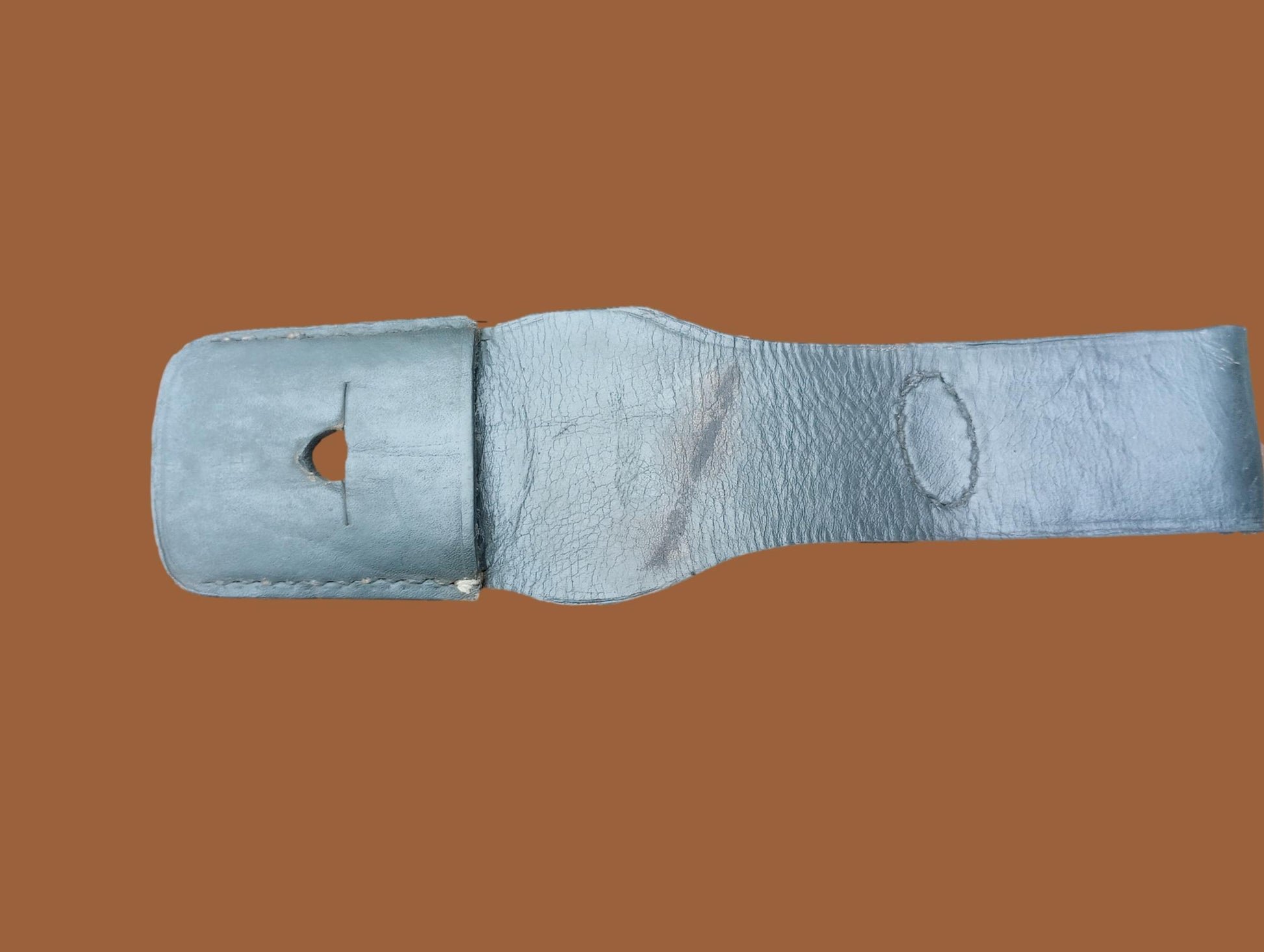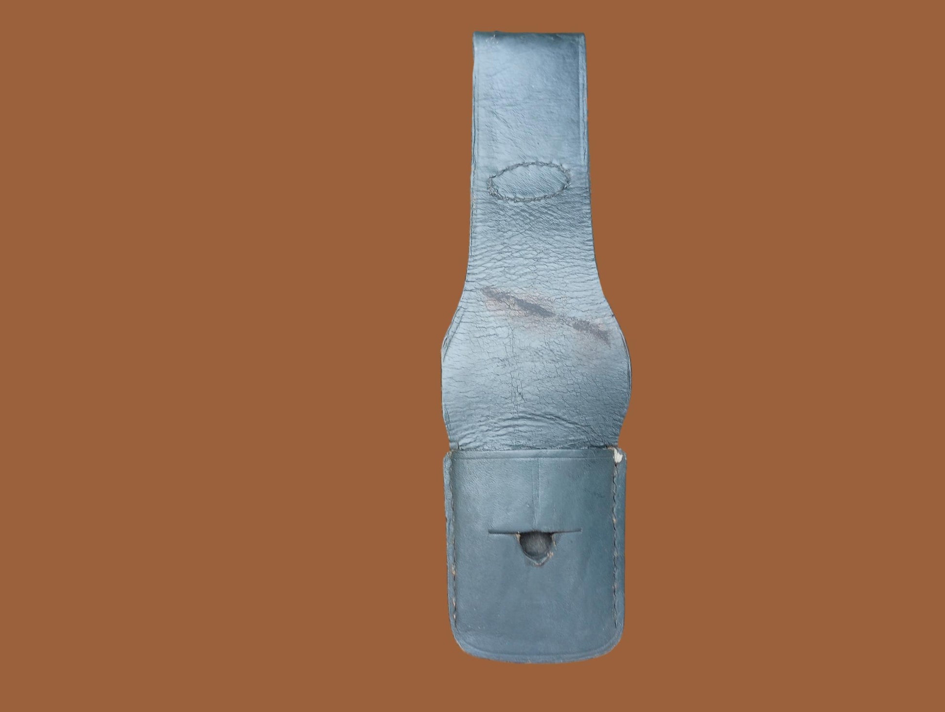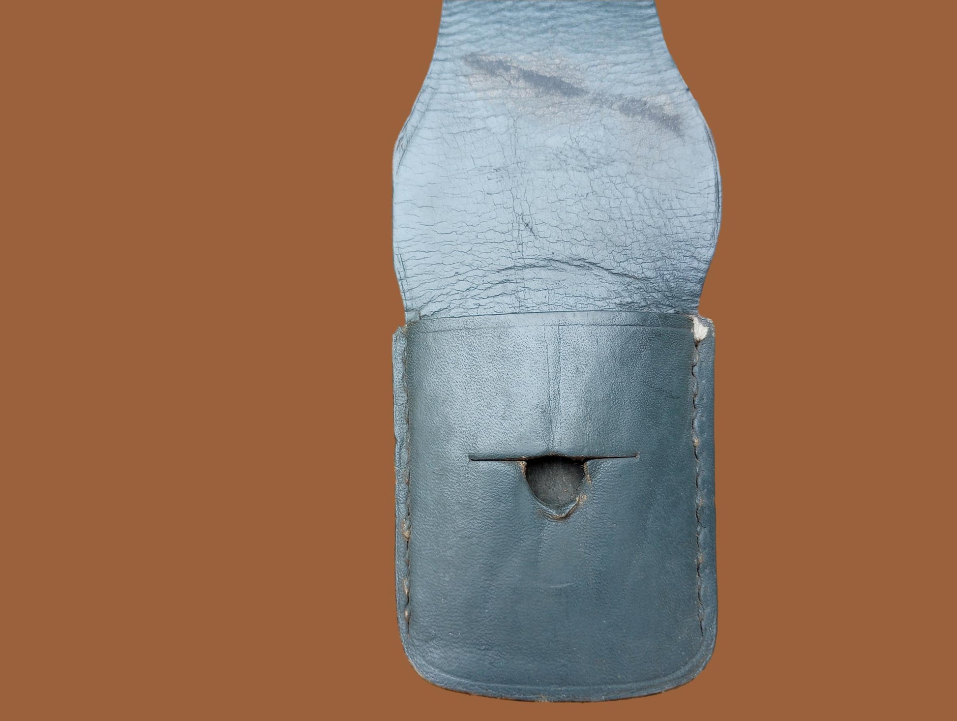 The condition of this WWII artifact is very good, showing that it has stood the test of time with dignity. The leather material, preserved in a stunning grey color, exhibits no significant issues, pointing to the careful use and maintenance it has seen over the years. This item not only represents a pivotal era in military history but also serves as a tribute to Italian craftsmanship and design prevalent during World War II.