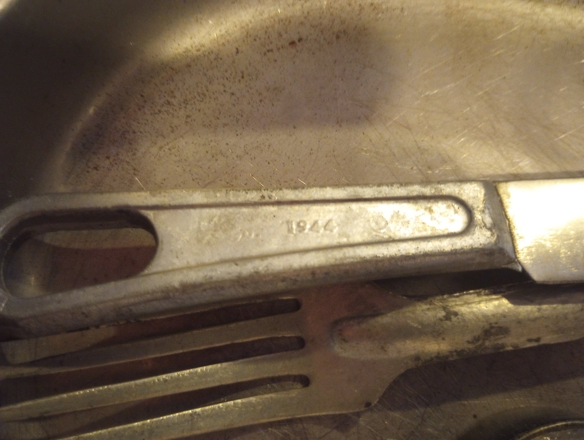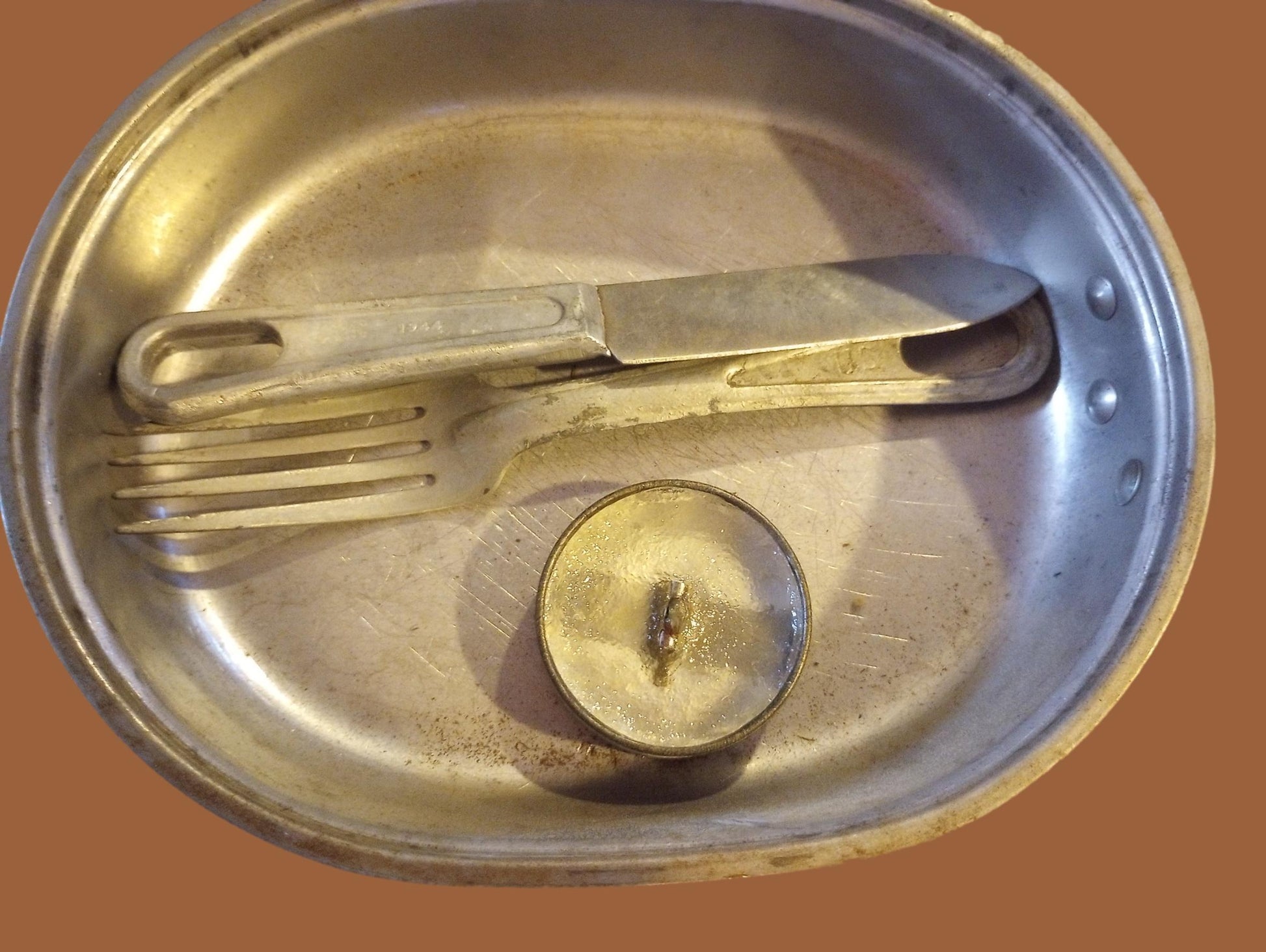 WWII U.S MILITARY MESS KIT WITH MEAT CAN POUCH 1944 KHAKI M-1928 GENUINE SET
